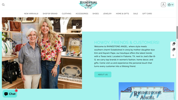 Welcome to RHINESTONE ANGEL, where style meets southern charm! Established in 2003 by mother-daughter duo Kim and Kaywin Pape, our boutique offers the latest trends with a Texas twist. Located in Flatonia, TX, next to Joel’s Bar-B-Q, we carry top brands in women’s fashion, home decor, and gifts. Come visit us and experience the personal touch that turns every customer into a lifelong friend.